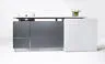 KERAN Office Reception Desk Counter 2.44M Right Panel Walnut & Carbon Grey