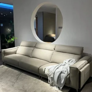3-seater 100% real leather lounge couch adjustable headrest light grey brand new
