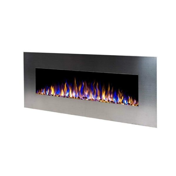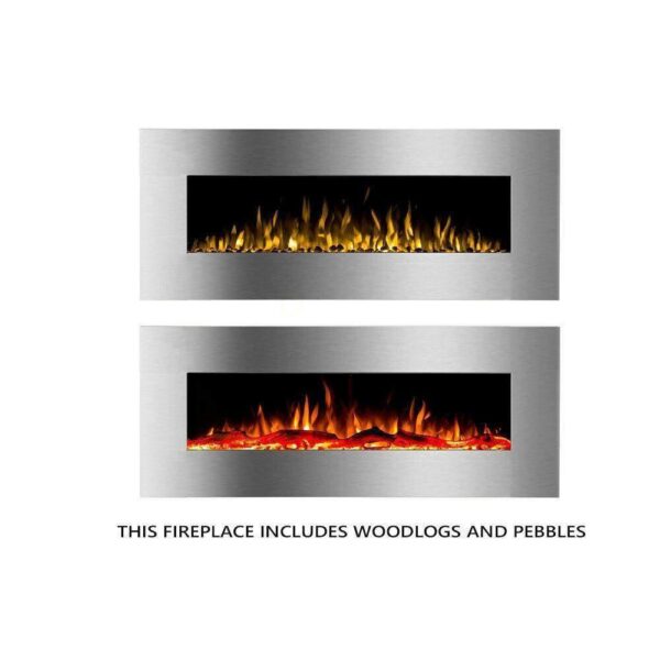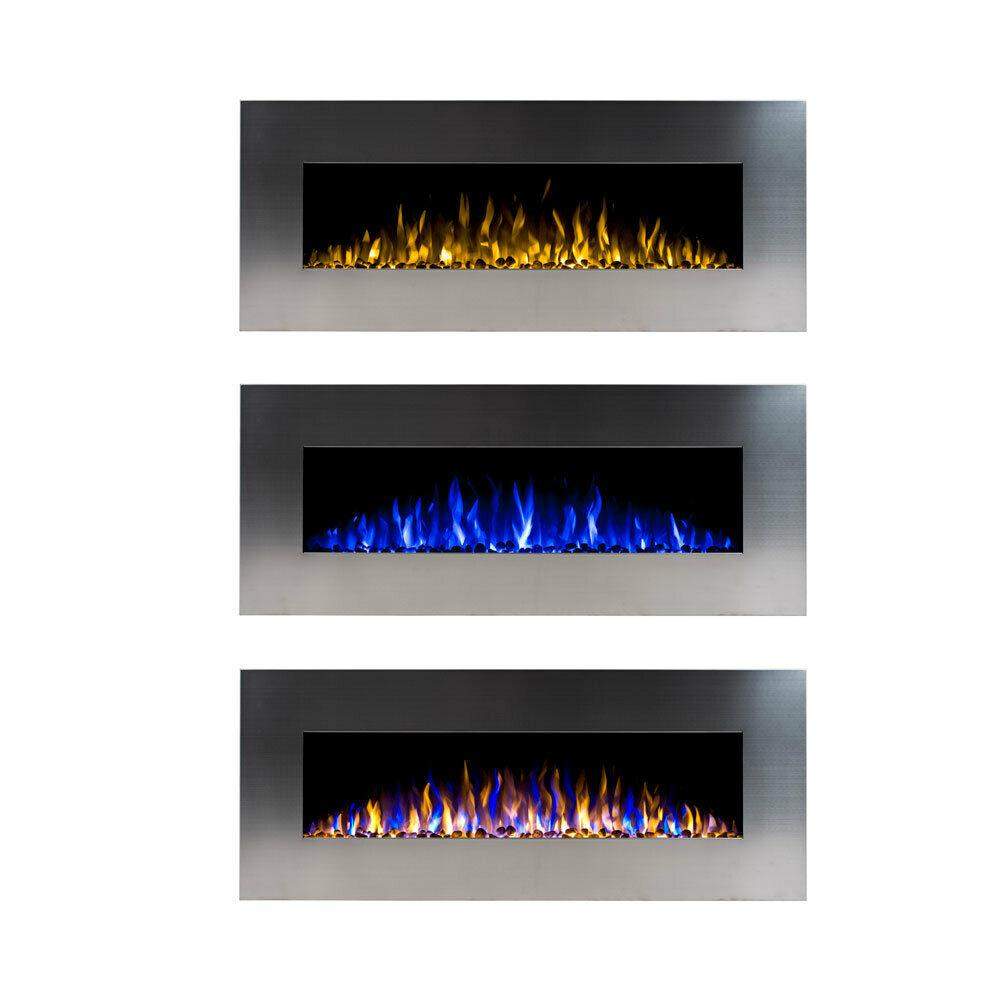 3 flame colour-changing options; Built-in Bluetooth Speakers. Designed with front flow heating with hidden venting. 5 levels of fuel bed brightness adjustment. Interchangeable module for easy customisation (Pebbles and Wood logs). Unsurpassed Realistic Flame Patter. Recessed or wall mount installation. Flame operates with or without heat. Two levels of heating and thermostat functions quickly warm up any room. Variable Heat & Variable Flame. 240 Volt – 1.5 Kilo watt/ 5000 BTU heater. Built-in timer mode for shut off in 30 minutes to 7.5 hours.