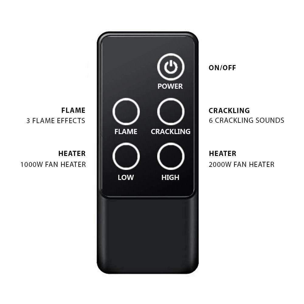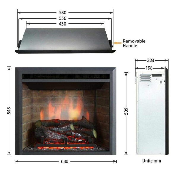 Offering both a high and low heat setting, the PRIMO is designed to heat a room up to 30 square metre. You will find that the heat and style of your electric fireplace combined with your home primary heating will offer just the right amount of warmth and ambience for a cosy atmosphere. With variable settings and an adjustable thermostat you can easily adjust the temperature to create efficient heat throughout your home. 3D flame effect – Create a truly realistic flame effect. A sleek look with three-sided interior brick wall and clean glass front trim design, without the hassle of cleaning dust or ashes. Life-like resin log sitting on the grate above ember bed, that’s just what a wood burning fireplace looks like. 2- power output setting, quickly warms up any room. Three flame effects with two colours (orange or orange and blue). Built in 6 Crackling sounds. 100% energy saving LED technology. Adjustable thermostat; Overheat Protection, Certified for safety (CE, GS, SAA certified). Easy to install and uninstall. With flat bottom, the insert can just sit on the floor directly; Operated with remote control. Brings atmosphere, elegance to any room. Enjoy the ambience of the flame with or without the heater.