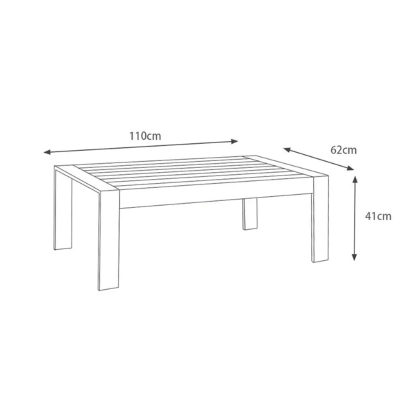 - Coffee Table – 110cm(D) x 62cm(W) x 41cm(H) ;