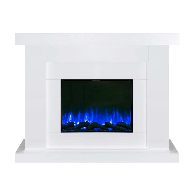Aristo 28 Inch Electric Fireplace Heater with White Mantel Suite