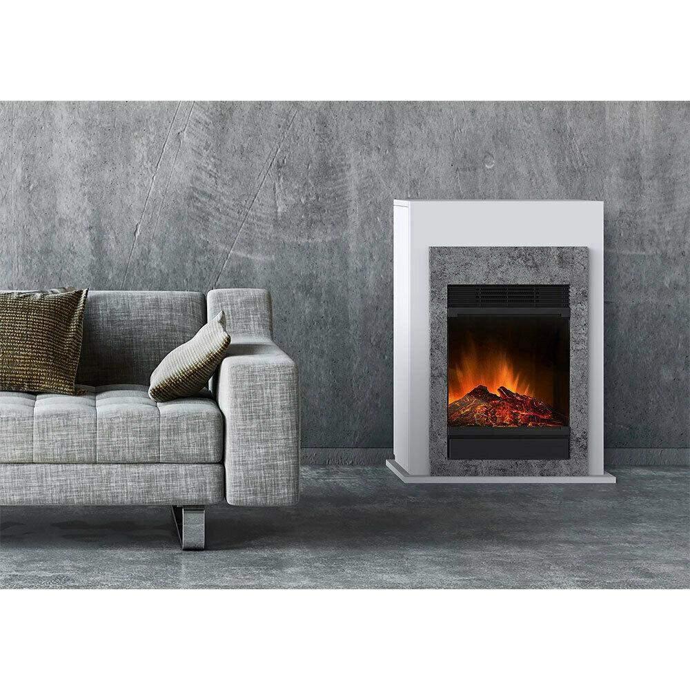 The mini electric fire suites are compact, freestanding and designed specifically for smaller rooms. Whilst they may be small in size, they are a stand-out feature in any room. Conner mini suite comes fully assembled, and provides the look and feel of a real fire. Create an instant ambience – just plug in and go. 1.5kW fan heater with choice of heat settings. LED Flame effect – can be used independently of heat. Remote control. Concealed controls. Can be moved from room to room. Modern matte white & concrete look. Complete Suite,Plug & Play. Elegant Grey and White Finish. Heating Capacity 1.5kW. Dimensions (WxDxH) 868h x 650w x 195d (mm) AU/NZ Power plug (220-240V)