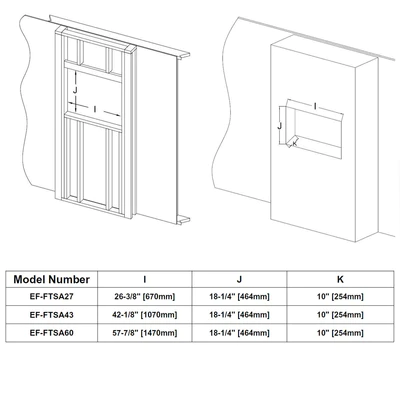 • Cavity Size – 147 cm(Width) x 25.4 cm(Depth) x 46.4 cm(Height);