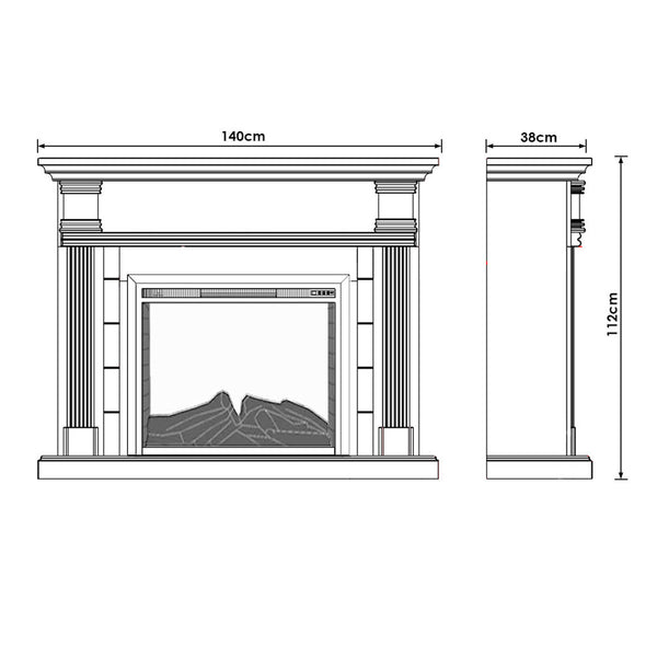 Dimensions: Fireplace Suite – 140cm (W) x 38cm (D) x 112cm (H). Packaging dimensions vary. Assembly required.