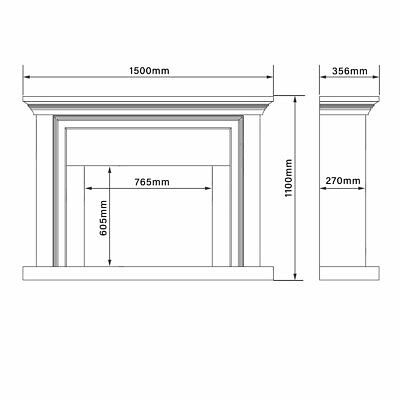 2. Fireplace Suite Dimensions (150W x 36D x 110H cm)
