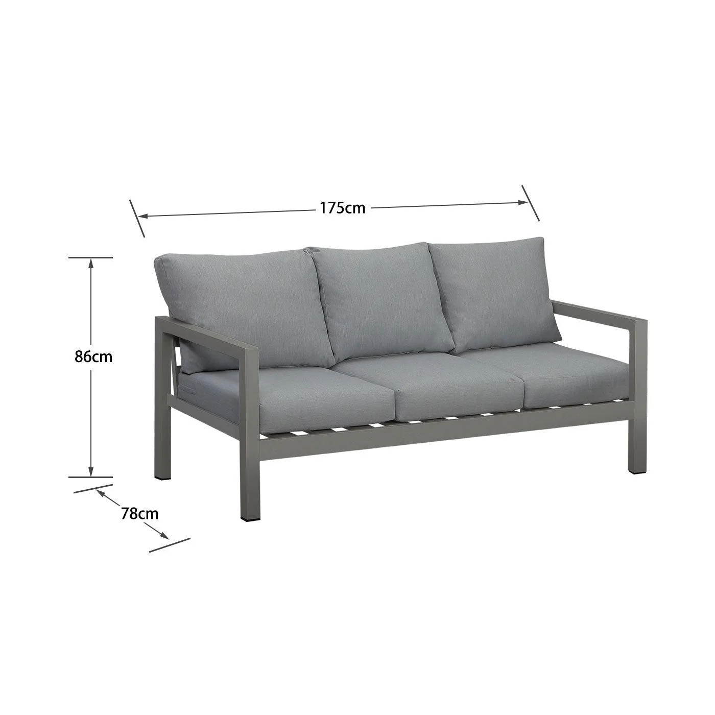 Manly 3 Seater Charcoal Aluminium Outdoor Sofa Lounge with Arms – Grey Cushion