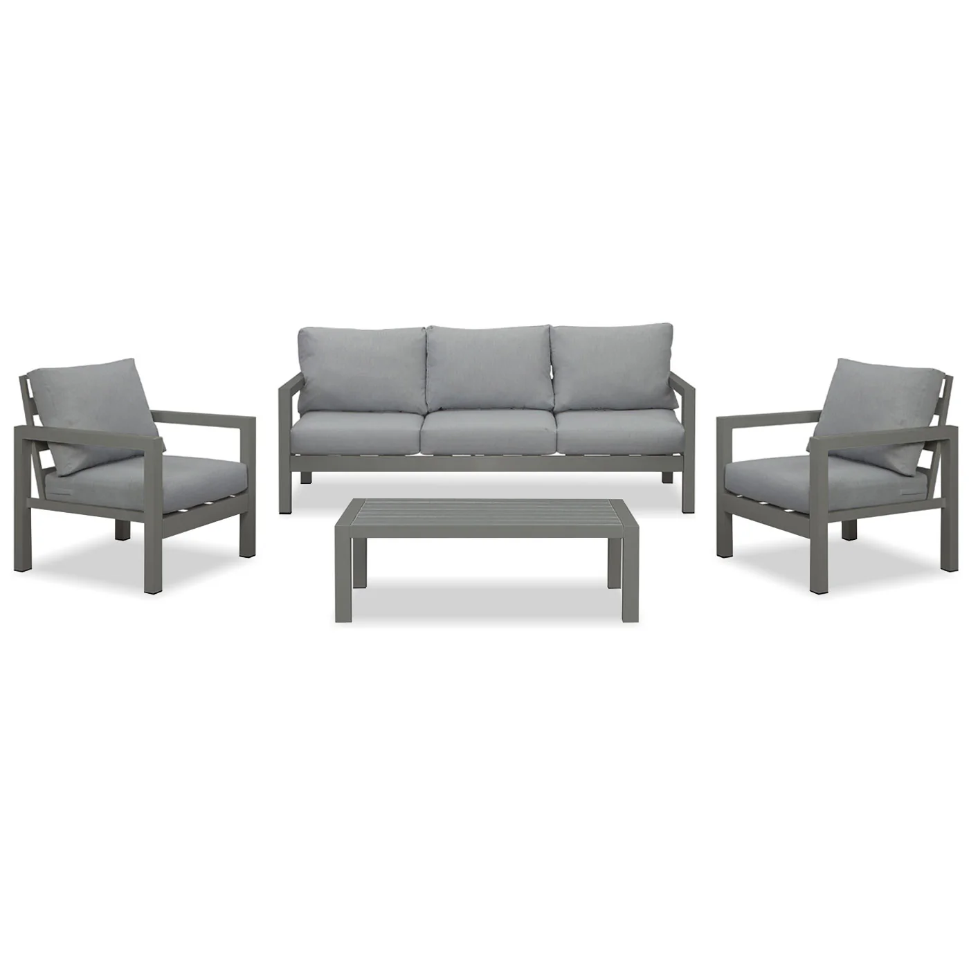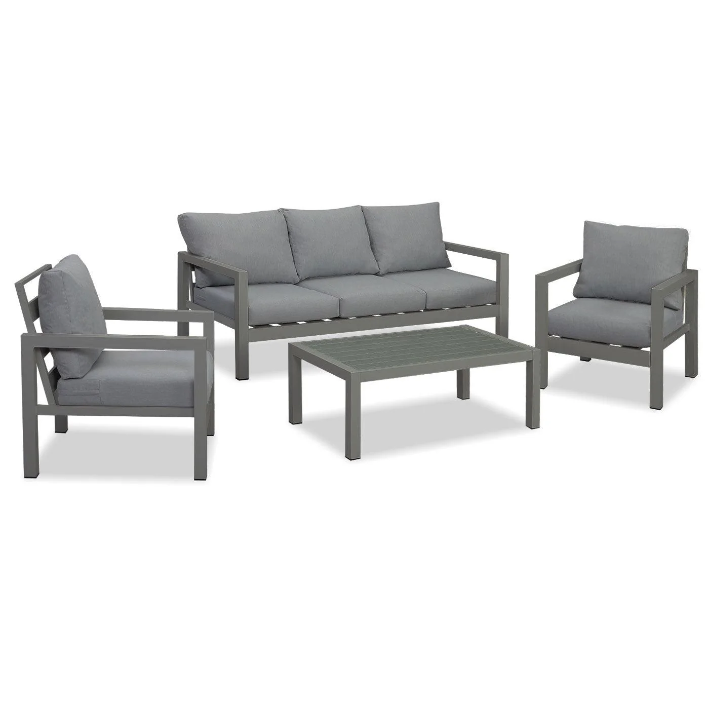 Manly 5 Seater Charcoal Aluminium Sofa Lounge Set – Grey Cushion