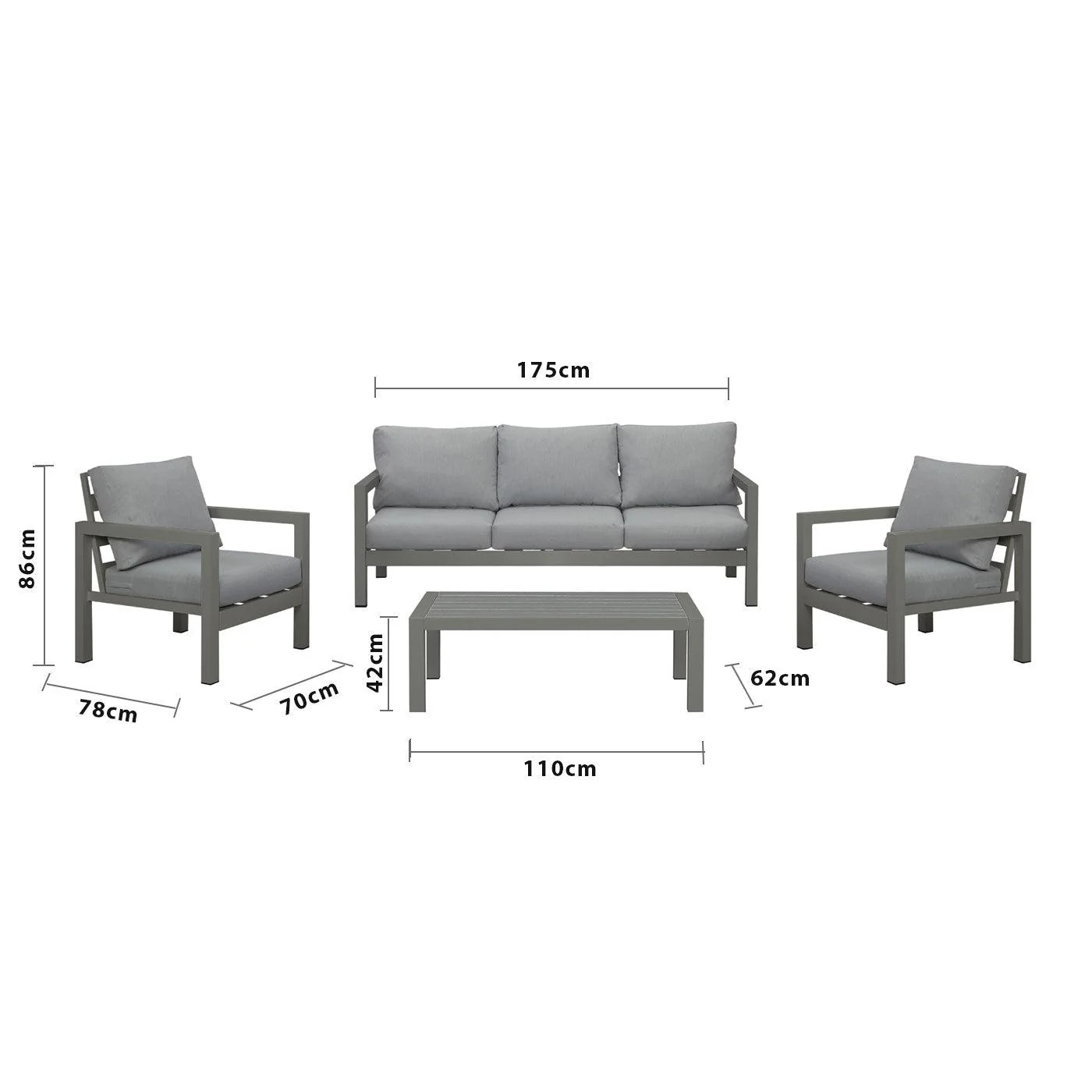 - Material: Aluminium, High Density Foam Cushion Inserts, Fabric Cushion Covers