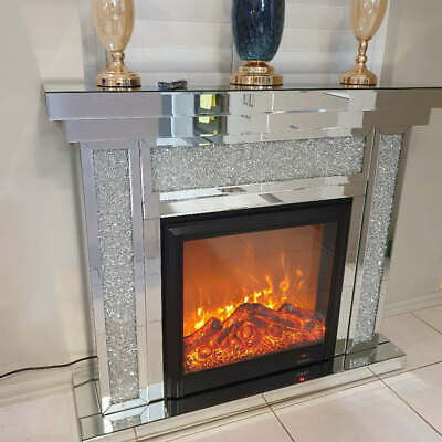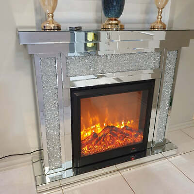 Diamond Crushed Mirrored Electric Fireplace (Glass Decorative)