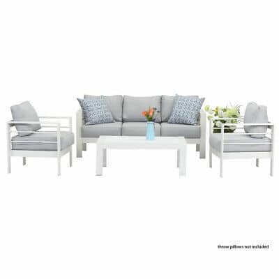 New White Outdoor Aluminium Sofa Lounge Setting Furniture Set Arms Chairs Table