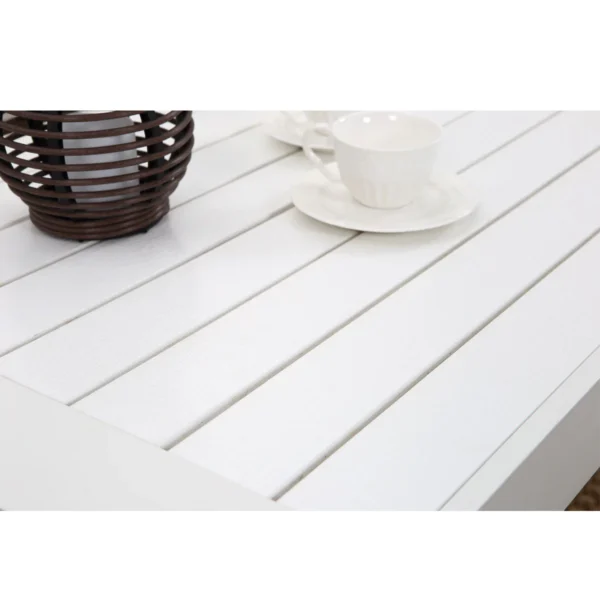 The white powder coated aluminium frame gives a light and unique framework. Easy to move around and adds a tasteful sense to your space. The sofa, individual chairs and coffee table all use the same materials, completing the unified style.