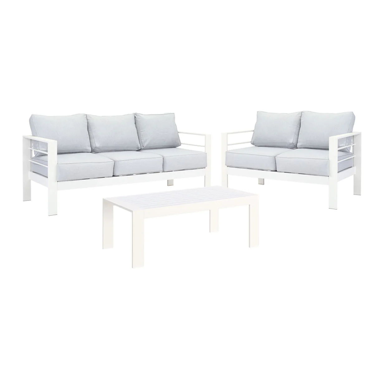 Paris 5 Seater White Aluminium Sofa Lounge Suite – Light Grey Cushion