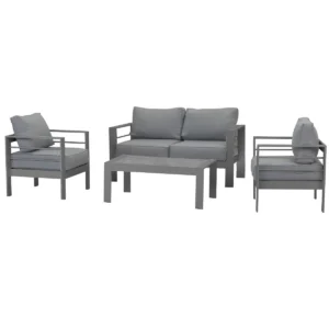 Paris 4 Piece Charcoal Aluminium Sofa Lounge Set – Grey Cushion